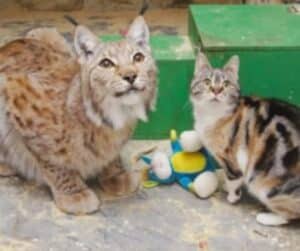 It all began when a small, scruffy domestic cat wandered into the Leningrad Zoo. Cold, hungry, and alone, the cat seemed to be searching for food and perhaps a safe place to rest. But instead of finding scraps or shelter, she made her way into the last place anyone expected: the enclosure of a Eurasian lynx, one of the largest wild cats in Europe.